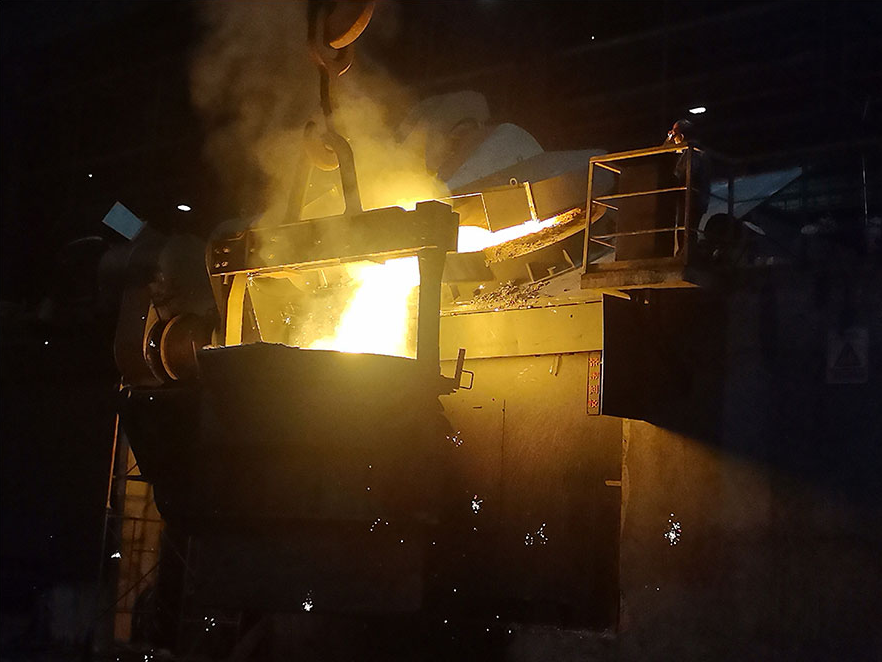 澆鑄現(xiàn)場,電爐內(nèi)鐵水沸騰,傾瀉時濺起簇簇火花,宛如漫天星光,劃破夜色,